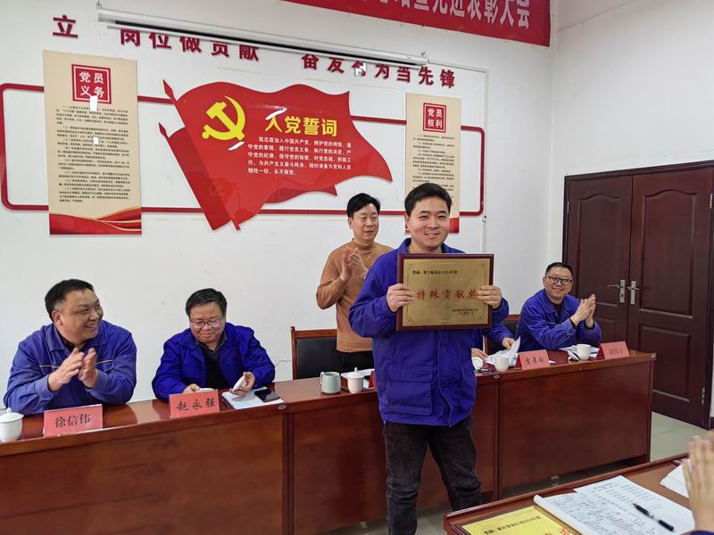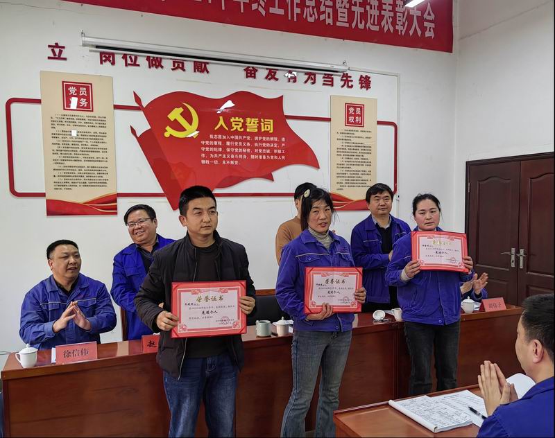 公司副總經(jīng)理趙永強宣讀了《關(guān)于兌現2024年度安全承包獎的決定》、《關(guān)于表彰2024年度先進(jìn)班組和先進(jìn)個(gè)人的決定》,對2024年年度工作中作出突出貢獻的炭材運行三班先進(jìn)班組、柴彬等8名先進(jìn)個(gè)人予以表彰,并頒發(fā)了先進(jìn)集體獎等四項集體獎牌以示鼓勵。